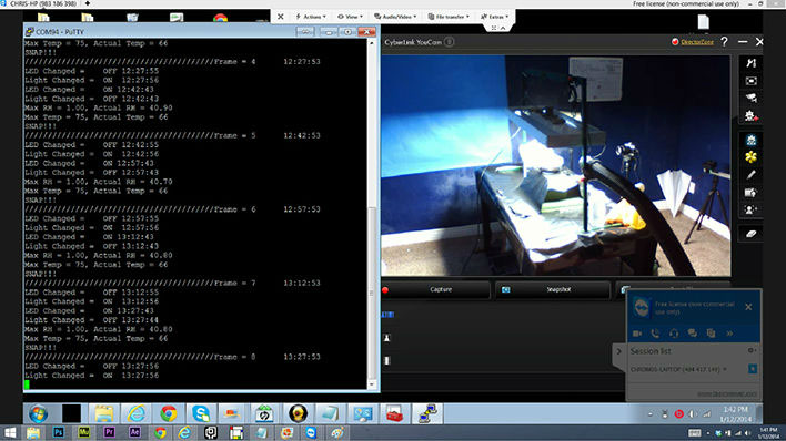 This came in particularly useful just last week. I had noticed that the grow light was shutting off about 5 minutes before it took the image, somehow I had managed to swap some values around. And while the system was generally running well, it was no optimal. I was at my day job and decided to remote in with my Surface Pro to check on things and see how it was doing. I tunneled into my home Laptop from my Surface, then established a connection to the studio laptop. I noticed the problem and pulled the code file back to my surface, made the adjustment, transferred it back to the studio laptop and uploaded the fixed code to the BCM. It started right back up and the problem was fixed, and it only took about 5 minutes.