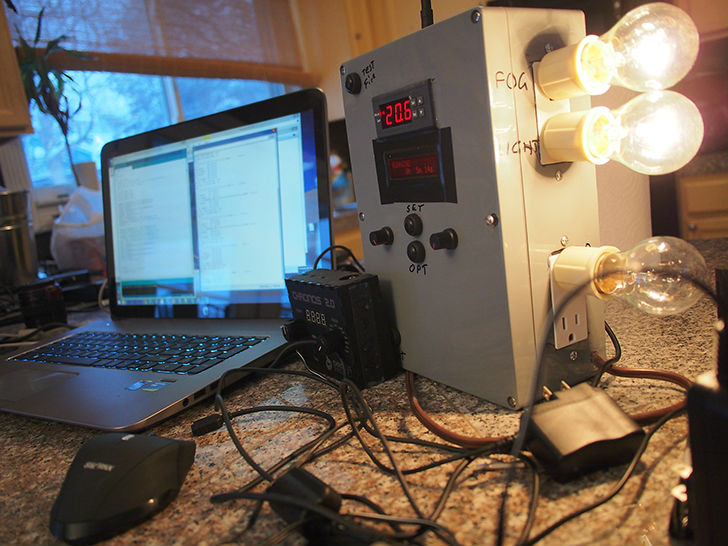I gave the system the ability to read and control both temperature and humidity. The timer functions allow me to run day/night cycles, run fog between shots but still stop soon enough to allow the fog a chance to dissipate so it is not in the image.