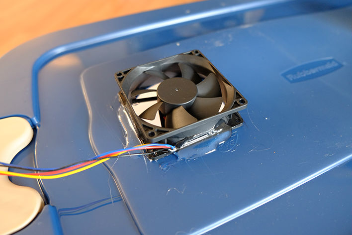 I cut the end off the power cable and spliced it in to the fans red/black leads, and plugged both the Fogger and Fan into a power strip that I plugged into the power cable which hit the humidifier controller.